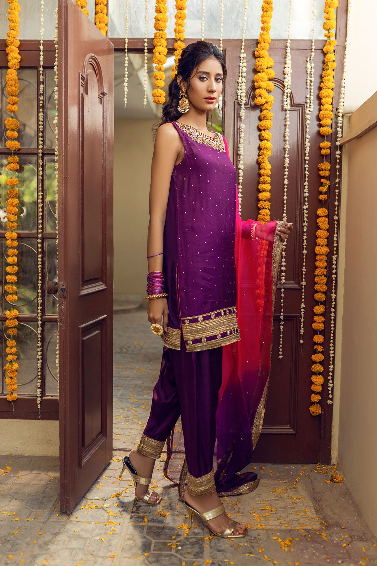 You may pair it up with a pink and purple Ombre dupatta to complete the look.